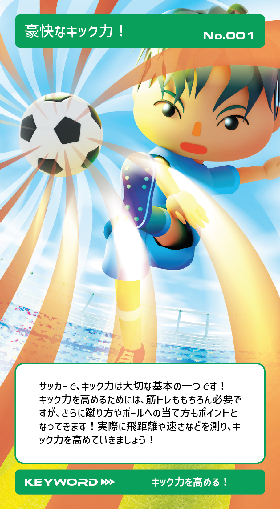 最後まで諦めず勝ちの姿勢でハイパフォーマンスを出し走り抜け、サッカーがより上手くなるためのきっかけをカードが教えてくれます。専門的な技の名前まであり、上手くなること間違いなし!